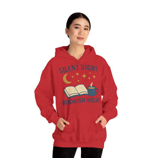 Silent Night, Bookish Night" Unisex Blue Christmas Hoodie – Cozy BookTok Gift